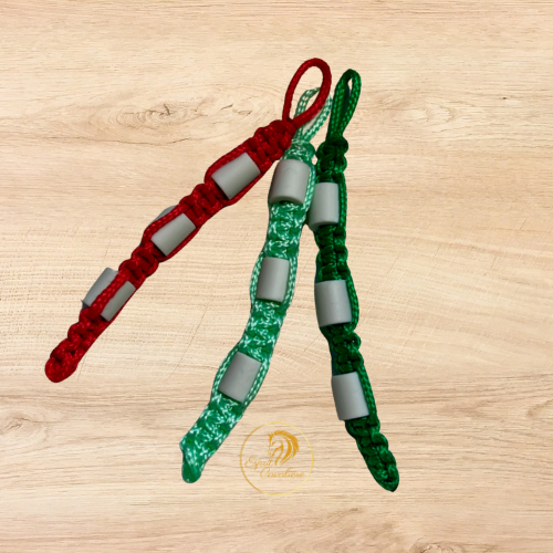 Nos charms anti-tiques sont conçus à la main avec de la corde PPM 2 mm et des perles en céramique EM, reconnues pour leurs propriétés naturelles. Une solution douce et esthétique pour accompagner ton cheval (ou ton chien) au quotidien.